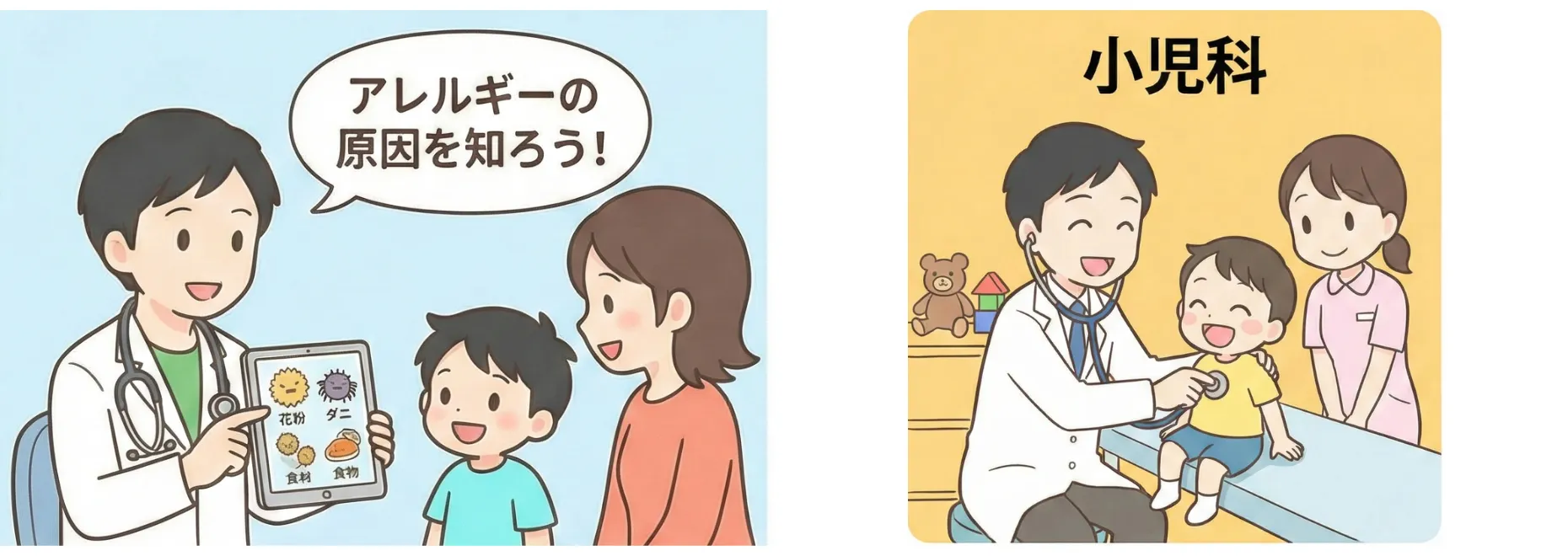 当院では、風邪や発熱、腹痛、皮膚炎など、お子さまの日常的な体調不良から専門的な疾患まで幅広く診療いたします。